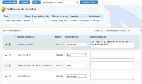 La información consignada en este elemento se verá reflejada directamente en los boletines de calificación del estudiante.