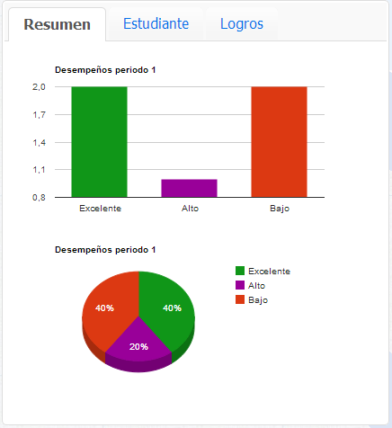 Ademas cuentan con herramientas estadísticas y gráficas que le permitirán al docente identificar rapidamente el comportamiento y rendimiento académico de cada una de las asignaturas que tiene en su carga académica.