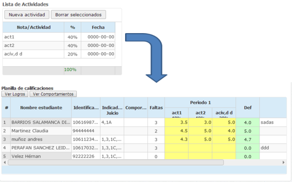 Los usuarios Docentes, pueden realizar los procesos de calificación de una manera facil, intuitiva y rapida, automatizando las actividades de calculo de definitivas y asignación de indicadores de desempeño .