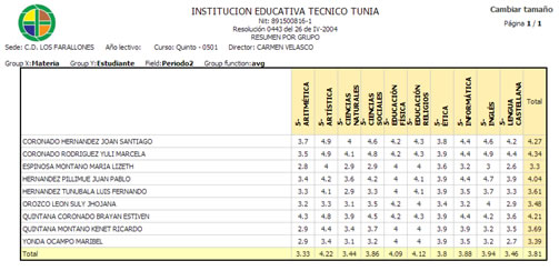 SIGIA genera informes que permiten conocer de una manera muy rápida el estado de avance de cada uno de los cursos y estudiantes, como el número de asignaturas perdidas por cada uno de ellos, dando a los directores de grupo información oportuna de sus grupos. | ![]() |