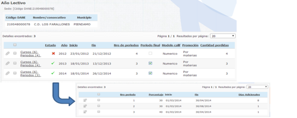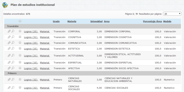 Para el Rector y/o Administrativos de la institución, la plataforma ofrece elementos de configuración y personalización como el plan de estudios permitiendole definir las asignaturas que se orientan en cada uno de los grados, así como las áreas a las que perntenecen y el porcentaje correspndiente en el sistema de calificación; además permite la configuración del año lectivo y los porcentajes de cada periodo.